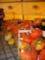 ...doch nun zur Kürbisprämierung. Dass die Levo-bank auch in diesem Jahr wieder einmal die tollen Gewinne zur Kürbisprämierung zur Verfügung stellt hatte sich schon im Vorfeld herumgesprochen. Trotz der schlechten Witterungsbedingungen des diesjährigen „Sommers“ konnte der Vorsitzende des OGV Uchtelfangen, Herr Joachim Herber, 44 Kürbisse der sehr schmackhaften Sorte „Rouge Vif d` Etampes“ vor der Prämierung wiegen.