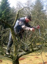 Am Samstag, dem 23.02.08 galt es dann die am Vorabend erworbenen Kenntnisse bei schönstem Vorfrühlingswetter in der Gartenanlage von Herrn Karl-Josef Jochem (MdL) im Uchtelfanger Bann "Zu den Rechen" anzuwenden und mit zu beobachten. Herr Anton Klesen führte in der sortenreichen Obstbaumanlage an jungen und alten Bäumen die korrekten Schnitttechniken zur Ertragsverbesserung vor.