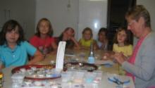 Die Initiatorinnen unseres Ferienfreizeitangebots, Roswitha Parduhn und Ursula Klein hatten ebenso sichtlichen Spaß mit den interessierten Gästen manche Kette mit verschiedensten Materialien aufzufädeln. Niemandem wurde es langweilig und die vorgesehenen vier Bastelstunden vergingen zwischen einer Limo- und Kakaopause wie im Flug. Am Ende konnten die jungen Teilnehmerinnen den schon wartenden Eltern ihren tollen, selbst gefertigten Schmuck präsentieren!