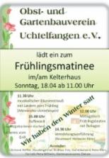 ![]() | Premiereveranstaltung Frühlingsmatinée gelungen! Unsere erste Frühlingsmatinée am Kelterhaus profitierte neben seiner Einzigartigkeit auch von dem schönen Frühlingswetter am Sonntag, den 18.04.10. Unserem Motto „Wir haben den Winter satt“, waren viele Besucher ans Kelterhaus gefolgt. „Wir wollen mit dem Frühlingsmatinee Kunst-, Kultur und den Gemeinsinn fördern, aber auch das Gartenfachliche spielt hier und heute eine wichtige Rolle“, so der Vorsitzende Joachim Herber in seiner Begrüßungsansprache zu den Gästen.Die waren natürlich neugierig auf die Liedbeiträge des Männerchor Uchtelfangen, der mit seinem zweiten Dirigenten, Herrn Daniel Franke, die Matinée eröffnete. Es machte so richtig Spaß unter Zelten am Kelterhaus zu sitzen, Sonne zu tanken und dem Männerchor beim Vortrag seines bunten Liederstraußes zuzuhören. Eine kleine, aber feine Ausstellergruppe hatte ihre Verkaufsstände aufgebaut. Hier konnte man sich Stauden, hübscheste Gartenaccessoires, Blumen, Setzlinge, Tonwaren und Floristen-Kunst einkaufen. Für das leibliche Wohl war ebenfalls bestens gesorgt. Das Küchenteam erntete großes Lob, denn ein deftiger Frühlingsbraten mit frischen Beilagen fand über Mittag allerlei Abnehmer. |