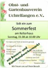 ![]() | Sommerfest mit Bauern und Kunsthandwerkermarkt fand außerordentlich positive Resonanz Insgesamt 25 Aussteller waren der Einladung des OGV Uchtelfangen gefolgt und ab 8.00 Uhr damit beschäftigt ihre Marktstände einzurichten. --> Bericht der Saarbrücker Zeitung "Gaumenfreuden in Uchtelfangen" |