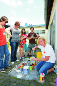 ![]() | Steckstuhl bemalen hat allen großen Spaß gemacht! Im Rahmen einer Ferienfreizeit hatte der Obst und Gartenbauverein Uchtelfangen e.V. zum Steckstuhl bemalen an das Kelterhaus eingeladen. Schon kurz nach der Erstankündigung dieser Bastelaktion im Illinger Nachrichtenblatt hatten sich fünfzehn Teilnehmer angemeldet. Spätere eingehende Interessenbekundungen mussten leider vorerst vertröstet werden. So trafen sich am 30.04.11 gegen 14.00 Uhr bei schönstem Frühlingswetter 15 neugierige Kinder und einige Erwachsene zur Bastelaktion am Kelterhaus. Alle hatten den originellen Stuhl in der Vorankündigung auf dem Foto gesehen. Neugierig wurde sich deswegen auch gefragt, wie dieser zugeschnitten ist und zusammengesteckt werden soll. Dieses Rätsel war natürlich nach dem Empfang der bereits vorbereiteten Stuhlbretter nach dem ersten Zusammenbau und einem „Ah, so gedd dadd!“ schnell gelöst! P.S: Die nächste Ferien- Freizeitaktion ist in Vorbereitung, mehr wird aber noch nicht verraten! |